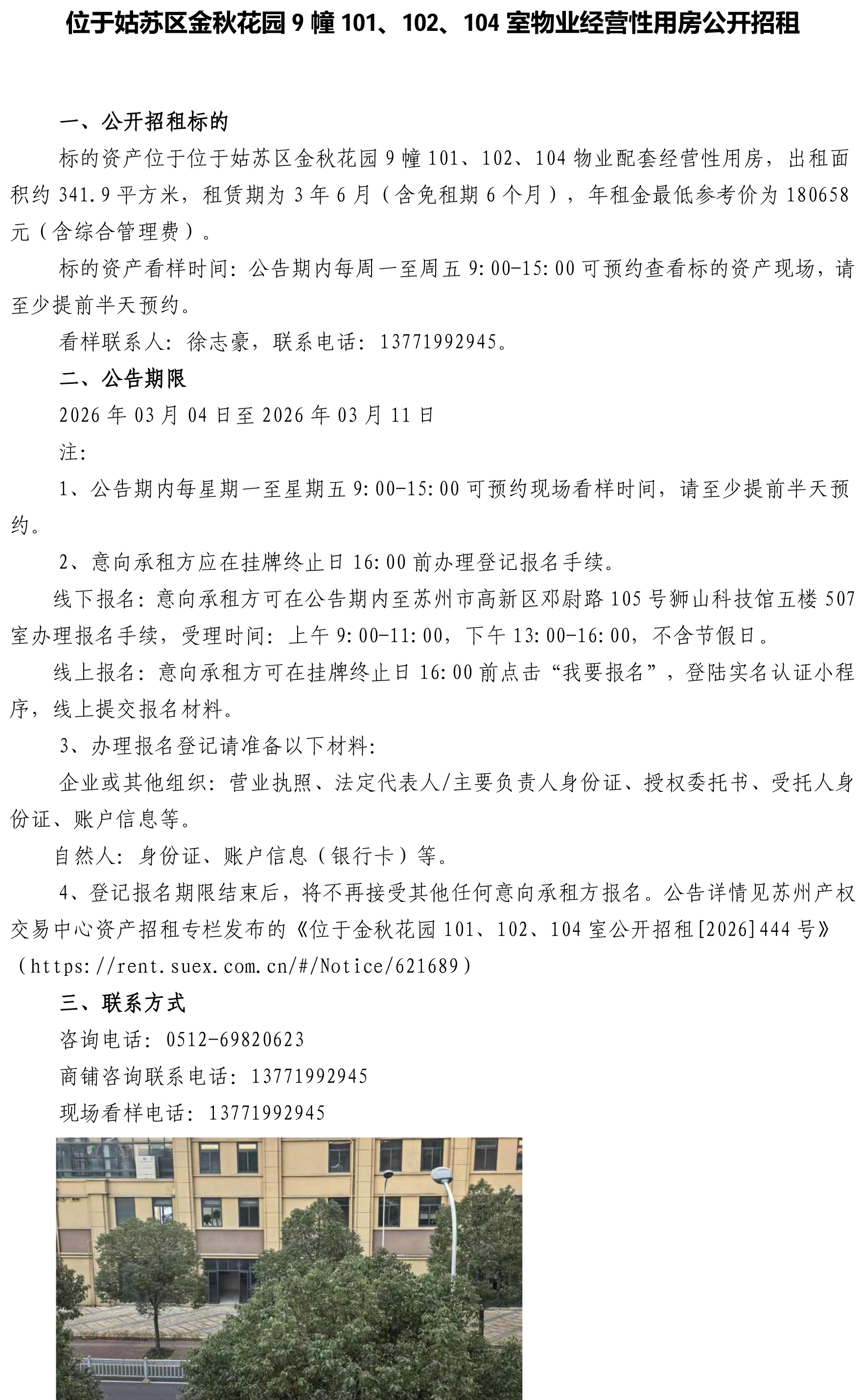 位于姑蘇區金秋花園9幢 101、102、104 室物業經營性用房公開招租